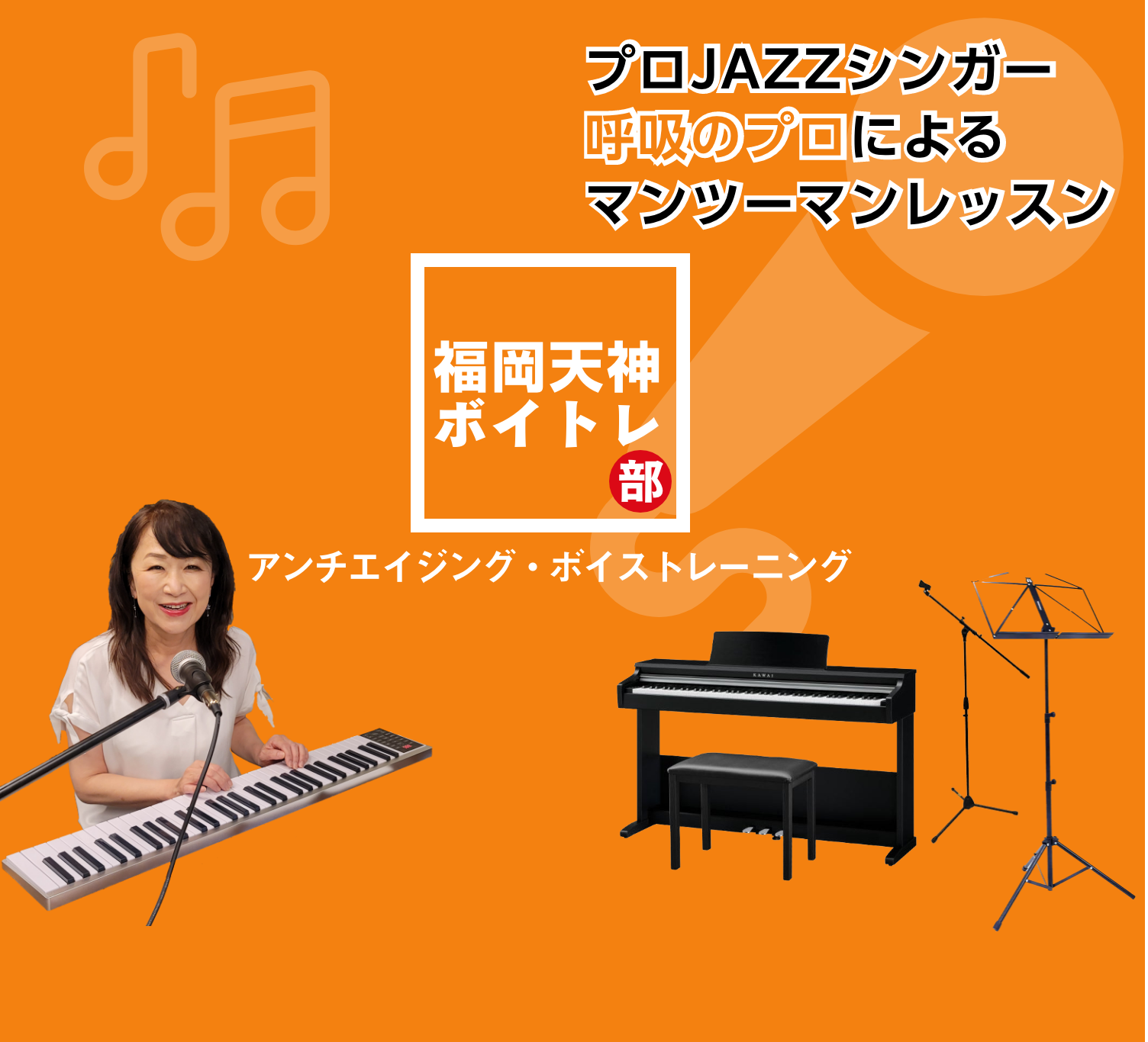 が受けるもので単に歌のレッスンと思われがちですが、それだけではありません。 自分の本当の声を認識していただき、人気のアニメ「鬼滅の刃」風ですが、正しい呼吸と正しい発声、また顔の表情筋の使い方、舌の使い方などを学んでいただきます。