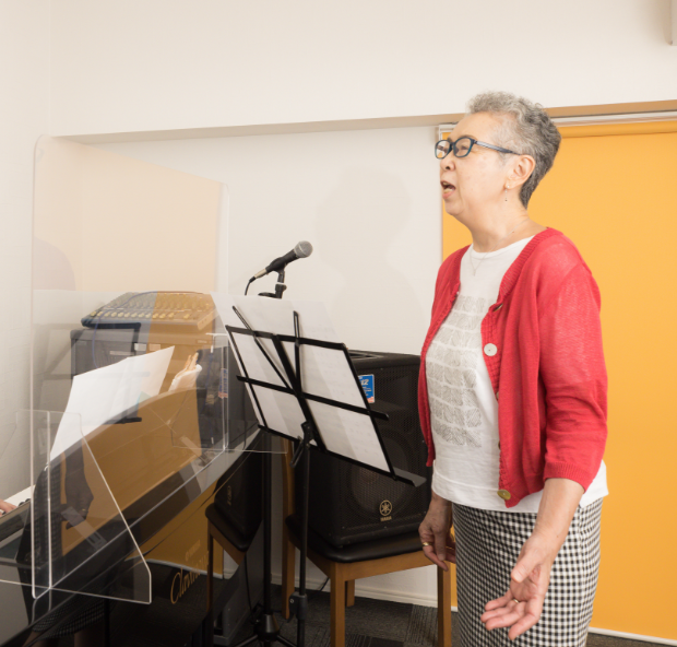 大きな声での発声、自分が好きな曲を歌ってみるレッスンは本当に楽しく、いつもあっという間。