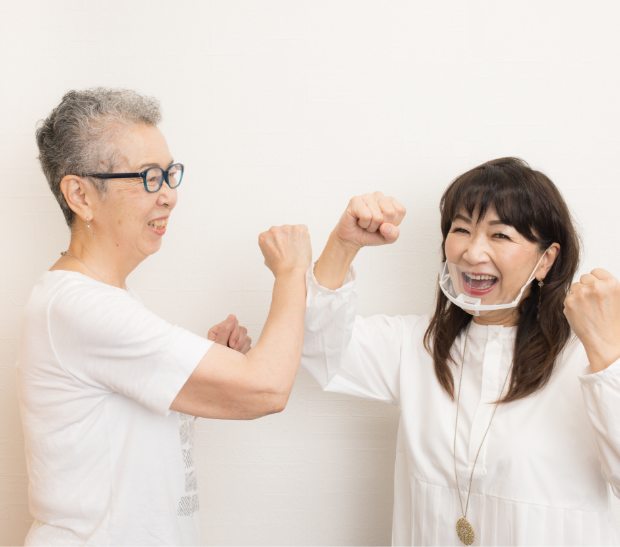 回数を重ねるにつれ、レッスン中は汗ばむようになりました。最近は教わった「日常生活でも出来るトレーニング」も行い、「聞き取りにくい」と言われることはなくなり、嬉しいことに「明るくなったね」と言われます。